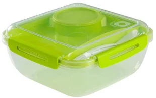 Pojemnik na sałatkę 1,7L MEMORY B3 posiada pokrywkę z silikonową uszczelką i klipsy z czterech stron, dzięki czemu jest w 100% szczelny. W środku znajduje się poręczna taca z oddzielną komorą na płyn np. sos do sałatki, w zestawie są dodatkowo 3 sztućce. Idealny rozmiar na sałatkę do pracy lub do szkoły.