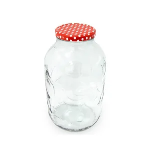 szkło, metal Kolor: czerwony, biały, przezroczysty Odpowiedni do kontaktu z żywnością Modny, nowoczesny wzór Uniwersalne zastosowanie Doskonały na domowy kompot i inne przetwory Słoik modnie wytłoczony w pomysłowy owocowy wzór.