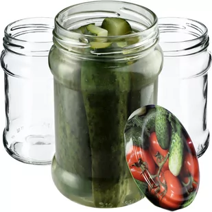 Dzięki temu możesz dopasować wzór wieczka do zawartości. Słoiczki z zakrętkami można wykorzystać na kiszone i konserwowe ogórki, grzyby, dżemy, powidła, kompoty, nalewki, miód, a także pasztety, kiełbasę i suche produkty. Dostępne są w kilku pakietach: 10, 20, 50 i 100 sztuk. Chcesz zrobić mniejsze przetwory lub dekoracje w słoiczkach? Nasze małe słoiczki będą dla Ciebie dobrym rozwiązaniem.