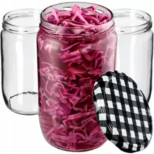 Dzięki temu możesz dopasować wzór wieczka do zawartości. Można je wykorzystać (na kiszone i konserwowe ogórki, grzyby, pasztety, dżemy, powidła, kompoty, miód, a także pasztety, kiełbasę i suche produkty). Sprawdzą się także jako przezroczyste pojemniki na drobiazgi. Szklane słoiki z zakrętkami znajdziesz w naszej ofercie w ilości 8, 16, 24, 48 i 64 sztuki. Słoiki szklane 720 ml to prosty i sprawdzony sposób na przygotowywanie domowych przetworów.