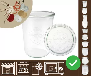 Słoik żaroodporny WECK Materiał: szkło Kolor: transparentny Pojemność słoika: 850 ml Wysokość słoika: 14,7 cm Rodzaj wieczka: