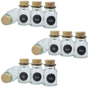 Viva Haushaltswaren VIVA artykuły gospodarstwa domowego # 36716 # 12 okrągłe pojemniki do produktów sypkich szklanki 150 ML z korkiem szklanki pojemniki na przyprawy przyprawy w zestawie: 24 etykiety z przyprawami, szkło #36716#