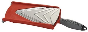 Ostrze szatkownicy typu mandolina Kobra V Axis de Buyer w kształcie litery V ze zoptymalizowanym kątem cięcia 19,3° łatwo przeniknie przez owoce i warzywa. Mikroząbki ostrza umożliwiają krojenie bardzo cienkich plasterków warzyw, również tych z twardszą skórką. Nowy system ClicExpress umożliwia natomiast szybką i efektywną regulację grubości plasterków. Za pomocą pokrętła na końcu rękojeści niezwykle łatwo ustawią Państwo ostrze na krojenie plastrów od bardzo cienkich o grubości 0,2 mm aż po 5 mm (regulacja co 0,2 mm). Rękojeść o ergonomicznym kształcie pokryta warstwą silikonu umożliwia trzymanie w taki sposób, który zapewnia bezpieczeństwo i nie męczy dłoni, antypoślizgowe nóżki dają możliwość komfortowego oparcia szatkownicy o blat kuchenny.