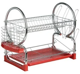 Premier Housewares Premier suszarka do naczyń, 2 poziomy, chromowana, w zestawie z czerwoną wyjmowaną podkładką 0509586