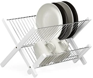 Relaxdays ociekacz ze stali nierdzewnej, 2 poziomy, składany, zajmuje mało miejsca ociekacz, wys. x szer. x gł.: 25,5 x 39 x 30 cm, biały 10023256