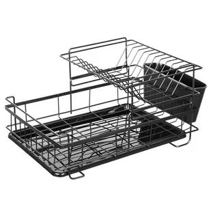 2 poziomowa suszarka do naczyń BRUNBESTE. Zawiera plastikowy, dwukomorowy ociekacz na sztućce. Suszarka charakteryzuje się przemyślaną konstrukcją, która pozwala na suszenie dużej ilości naczyń jednocześnie. Powlekana proszkowo metalowa rama w kolorze czarnym. Suszarka pasuje do każdej kuchni.