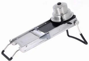 Szatkownica do warzyw Revolution de Buyer solidna szatkownica wykonana ze stali nierdzewnej i wytrzymałego tworzywa sztucznego przeznaczona do profesjonalnego użytku deska do krojenia z wgłębieniami nad ostrzami ułatwiającymi przesuwanie podczas tarcia płynna regulacja grubości plastrów do 10 mm szerokości, umożliwia krojenie nawet bardzo cienkich plastrów nowoczesne dwustronne ostrze poziome z krawędzią falistą i rowkowaną z mikroząbkami przeznaczony do krojenia nawet bardzo miękkich warzyw i owoców (również cytrusów) poziome ostrze wykonane ze stali nożowej - cięcie jest znacznie łatwiejsze dzięki rowkowanej powierzchni ostrza opatentowany system do cięcia kostek i rombów (losanges) ergonomiczna osłona dłoni ze stali nierdzewnej z systemem obrotowym dla łatwego i regularnego cięcia uproszczony system wkładania noży do robienia kostek i pasków julienne trzy różne nasadki do pasków julienne 2, 4 i 10 mm uchwyt na warzywa/owoc z ochroną palców wyjmowany pojemnik na ostrze chroni ostrze podczas przechowywania, oszczędza miejsce ostrza należy czyścić ręcznie, obudowę mandoliny można następnie myć w zmywarce do naczyń odpowiedni dla prawo i leworęcznych wyprodukowano we Francji Najwyższej jakości szatkownica Revolution francuskiej marki de Buyer przeznaczona jest do łatwego i szybkiego krojenia wszelkiego rodzaju owoców i warzyw. Wysokiej jakości ostrze z łatwością przenika przez ich skórkę i zachowuje konsystencję i kształt nawet w przypadku bardziej miękkich owoców, takich jak pomidory czy kiwi. Można nim bez problemu kroić nawet owoce cytrusowe. Antypoślizgowe nóżki umożliwiające wygodne oparcie mandoliny na blacie roboczym zapewniają jej stabilność, a szeroka powierzchnia tnąca ułatwia krojenie nawet większych kawałków żywności. Istotną częścią mandoliny jest ergonomiczny uchwyt do owoców/warzyw, który pozwala na bardzo szybkie i bezpieczne tarcie.