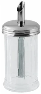 Dozownik do cukru 350ml (wys 17cm) Dozownik szklany z wieczkiem ze stali nierdzewnej, o pojemności 350 ml.