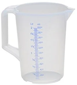 12 | NR PRODUCENTA: 937000 | EAN: 4007228937008 | TYP PRODUKTU: Nowy | Dzbanek z miarką 2. 000 ml, 2 podziałki, zamknięty uchwyt wykonany z nietłukącego i bezpiecznego dla żywności polipropylenu (PP), przezroczysty z formowaną wtryskowo, przezroczystą skalą i dodatkową niebieską wytłoczoną skalą z zamkniętym uchwytem szczególnie stabilny ergonomiczny uchwyt i wylewka do bezpiecznego przenoszenia nietłukący, stabilny wymiarowo i autoklawowalny dobra odporność chemiczna na alkohol, tłuszcze, żywice, zasady, oleje i kwasy nadaje się do żywności, odporny na temperaturę: