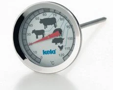 Koniec z niedopieczonymi potrawami mięsnymi! Z funkcjonalnym termometrem Punkto marki Kela z łatwością określisz jaką temperaturę osiągnęło Twoje danie. Dzięki niemu każdy rodzaj przygotowywanego mięsa będzie zawsze doskonale wypieczony, a potrawy będą zachwycały soczystością i niepowtarzalnym smakiem. Termometr posiada skalę w stopniach Celsjusza (0-120°C) oraz pomocnicze oznaczenia, które podpowiedzą Ci jak dobrać odpowiednią temperaturę do pieczenia drobiu, wieprzowiny i innych gatunków mięs. Długi, stalowy szpikulec umożliwia łatwe umieszczanie termometru w potrawie. Produkt jest prosty w użyciu i utrzymaniu czystości. Niezastąpiony w każdej kuchni, gdzie potrawy przygotowuje się z największą starannością.