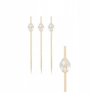 Patyczki do przekąsek Praktyczne patyczki do przekąsek świetnie sprawdzają się jako efektowna dekoracja stołu oraz dania. Pełnią również funkcje złączenia elementów przystawki razem dzięki czemu nie rozpadają się ułatwiając jedzenie. Art. 82187 Kolor: transparentny Materiał: drewno, plastik Wymiary: