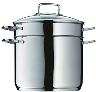 WMF z przeznaczeniem do gotowania dużych ilości makaronu będzie przydatnym pomocnikiem dla tych którzy lubią przygotować w swoich domach dania włoskie. Zastosowanie specjalnego wkładu sprawia gotowanie wygodniejszym.