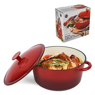 Gęsiarka Żeliwna 5l Okrągłą Garnek Emaliowany Pokrywką Ciężki Indukcja Gaz
