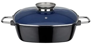 GSW 167413 Ceramica 167413 prostokątna brytfanna indukcyjna ze szklaną pokrywą, 28 x 28 x 8,5cm/ok. 5,0 l, odlew aluminiowy, kolor: czarny/granatowy, 42 x 29,5 x 10,0 cm, 2 elementy 167413