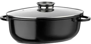 GSW 410571 Gourmet Ceramica naczynie indukcyjne XL owalne ze szklaną pokrywką aromatyczną 38 x 25 cm / ok. 8,5 litra, odlew aluminiowy, czarny nakrapiany, 38 cm, 4 sztuki