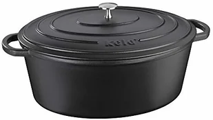 Kela Calido 12474 Brytfanna z Pokrywką, Żeliwo, Powłoka Emaliowana, Wysoka Akumulacja Ciepła, Nadaje Się do Płyt Indukcyjnych, 9,5 L, Czarny, Owalny, Calido