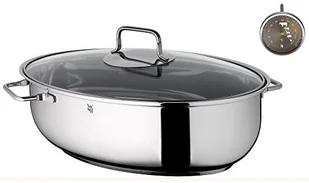stal nierdzewna Cromargan 18/10 - można ją myć w zmywarce, jest łatwa w czyszczeniu, nadaje się do piekarnika, jest neutralna w smaku i kwasoodporna. Wysokiej jakości szkło odporne na wysoką temperaturęWielofunkcyjny w kuchni: nadaje się do gotowania, pieczenia na płycie lub duszenia w piekarniku - jako naczynie do zapiekanek, brytfanna do gęsi lub zwykłe naczynie do zapiekanek Właściwości: Pojemność ok. 8,5 litraOdporny na działanie piekarnika, wytrzymały, neutralny w smakuCiężka szklana pokrywaW zestawie termometr do pieczeniaWymiary zewnętrzne 41 x 28,5 x 18 cmWymiary wewnętrzne 38 x 25,5 x 12 cmWymiary podstawy 30 x 18 cmStal nierdzewna CromaganNadaje się do wszystkich konwencjonalnych płyt grzewczych, w tym indukcyjnych Główne cechy Kształt Okrągły Kolor produktu Stal nierdzewna Materiał Stal nierdzewna Liczba uchwytów 2 Pokrywy w zestawie Tak Kolor uchwytu Stal nierdzewna Materiał uchwytu Stal nierdzewna Nadaje się do następujących płyt grzewczych Ceramiczna, gazowa, halogenowa, indukcyjna Ognioodporna Tak Temperatura (maks.) 250 °C Łatwa do czyszczenia Tak Materiał pokrywy Szkło