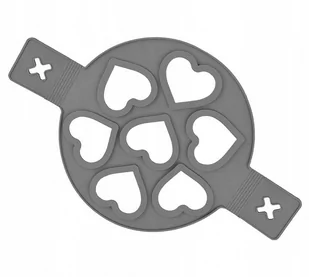 Silikonowa forma nakładka na patelnię do serduszek Forma do przygotowywania omletów, jajek lub placuszków w kształcie serc. Wykonana z wysokiej jakości silikonu, który nie przywiera oraz nie pochłania zapachów. Średnica całej formy 23 cm Szerokość jednego serca 6,5 cm