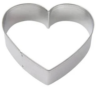 Metalowy wykrawacz do ciastek w kształcie serca. Dzięki niemu pieczenie ciasteczek będzie świetną zabawą. Jedna z krawędzi foremki jest ostra i bez trudu przecina ciasto, zaś druga pogrubiona i łagodnie wykończona, co sprawia, że jest całkowicie bezpieczna dla dłoni.
