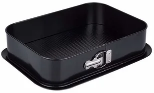 Tortownica Prostokątna Non Stick Czarna firmy SNB to praktyczna, prostokątna tortownica Non Stick w jolorze czarnym z dnem wyjmowanym o wymiarach 34 cm na 24 cm. Wykonana z blachy ocynowanej z wyjmowanym dnem z blachy fakturowanej o wymiarach 340x240mm. Fakturowana powierzchnia blaszki do pieczenia to nie tylko ułatwienie pieczenia i gwarancja pięknego tortu ale także pomoc w utrzymaniu w czystości. Odpinane boki ułatwią upieczenie nie tylko biszkoptu. Sernik, ciasto przekładane, ciasto z galaretką wymaga zastosowania takiej własnie formy. Pyszne wypieki domowe zawsze będą lepsze od kupnych. Wspólne pieczenie i gotowanie to zacieśnienie rodzinnych więzi a apetyczne ciasto, wykonane własnoręcznie to najsłodszy wyraz miłości! Tradycyjna blacha od SNB to produkt znany i lubiany od lat! Warto stawiać na dobre polskie produkty!