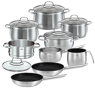 Co znajduje się w pudełku4 garnki ze szklaną pokrywką1 garnek na mleko1 wkład do parowania1 rondel2 patelnie z 1 szklaną pokrywkąSzczegóły techniczneWymiary produktu: 63,5 x 36,5 x 34,5 cm; 11,8 kgWaga: 26,01 FuntyObjętość: 1 CentylitryWykończenie: Bez powłokiLiczba sztuk: