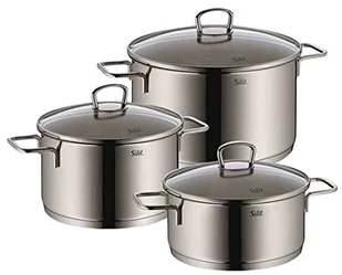 Zestaw garnków Silit Alicante 3 szt. Alicante - nowoczesny, ponadczasowy w solidnej jakości. Cechy artykułu: Materiał: stal nierdzewna Cromargan 18/10 - polerowanaKształt: prosty, cylindrycznyObręcz ułatwiająca nalewaniePokrywka z wysokiej jakości szkła z obręczą ze stali nierdzewnejArt.