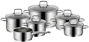 Zestaw garnków WMF Astoria zawiera: 2x niskie garnki z pokrywkami o średnicy 16 i 20 cm 3x wysokie garnki z pokrywkami o średnicy 16, 20 i 24 cm 1x rondel o średnicy 16 cm Lubisz jakość Materiałów i wykonania w swoich naczyniach kuchennych$170 W takim przypadku z pewnościąspodoba Ci sięten 4-częściowy zestaw garnków i patelni Astoria z pokrywkami, idealny do oszczędnego gotowania bez użycia dużej ilości wody. Są one wykonane ze stali nierdzewnej Cromargan(R), która jest odporna na zarysowania, wytrzymała, neutralna w smaku i łatwa do czyszczenia. Dzięki uniwersalnemu dnu TransTherm(R) , garnki nadają się do wszystkich rodzajów płyt grzewczych, w tym indukcyjnych. Wyszukany design, szeroki odLionany rant i możliwość mycia w zmywarce to kolejne, i nie ostatnie, zalety tego zestawu.