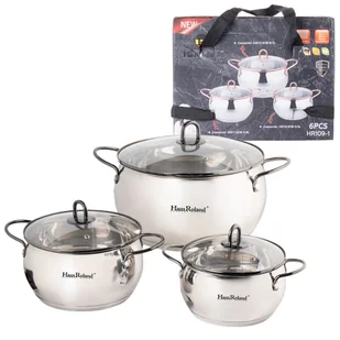 Komplet garnków nierdzewnych 6 el. - stalowe garnki na indukcję i gaz Zestaw 3 stalowych garnków do gotowania o pojemnościach: 2,6l, 3,6l i 6,1l z czarnymi u...