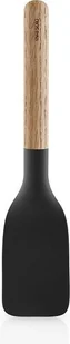 Uniwersalne narzędzie kuchenne, wykonane z połączenia czarnego silikonu i drewna dębowego. Opiekacz może być używany na wszystkich rodzajach naczyń kuchennych.