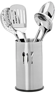 Relaxdays Zestaw przyborów ze stali nierdzewnej, 5-częściowy, stojak, 4 łyżki do gotowania, akcesoria kuchenne, srebrny, 10,5 x 10,5 x 30 cm
