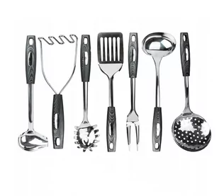 Zestaw akcesoriów ze stali nierdzewnej - 7 elementów Karl Hausmann Praktyczny i wyjątkowy zestaw siedmiu elementów, które sprawdzą się w każdej kuchni. W skład zestawu wchodzą: Łyżka cedzakowa, szumówka - 33,5 cm Tłuczek do ziemniaków - 26 cm Łyżka kuchenna, chochla, nabierak - 31 cm Łyżka do spaghetti - 31 cm Łyżka do sosu - 30 cm Widelec kuchenny do mięsa - 32,5 cm Łopatka kuchenna - 34 cm W ZESTAWIE TANIEJ !! KUPUJĄC NA NASZEJ AUKCJI KUPUJESZ PRODUKTY BEZPOŚREDNIO OD PRODUCENTA! Zyskaj jakość i bezpieczeństwo.