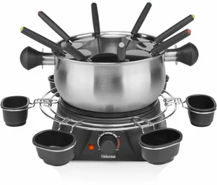 Lubisz fondue, ale masz dość używania do niego podgrzewaczy$17 W tym rodzinnym zestawie do fondue ze stali nierdzewnej marki Tristar możesz przygotować zarówno kolację, jak i deser. Możesz wykorzystać go do tradycyjnego, szwajcarskiego fondue serowego lub słodkiego fondue czekoladowego! Wszystkie sosy możesz podać na obracającym się wokół garnka pierścieniu, dzięki czemu będą łatwo dostępne dla wszystkich biesiadników. Za sprawą mocy 1400 W zawartość garnka szybko się podgrzeje. Po rozgrzaniu możesz z łatwością ustawić temperaturę za pomocą regulowanego termostatu. Garnek o pojemności 1,3 L będzie odpowiedni do przygotowania fondue dla nawet 8 osób.