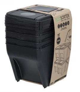 Zestaw 4 koszy do segregacji odpadów z wytrzymałego tworzywa odpornego na warunki atmosferyczne. Dzięki możliwości piętrowania zajmują niewiele przestrzeni oferując jednocześnie dużą pojemność.