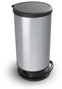 Metalizowany kosz na śmieci o nowoczesnej i lekkiej konstrukcji. Na zewnątrz pokryty łatwą do utrzymania w czystości powłoką metalową. Aluminiowa folia zabezpiecza przed pozostawaniem śladów palców, jest odporna na rdzę i śniedzenie. Dzięki amortyzacji klapy kosz zamyka się cicho, a otwiera się go wygodnym dużym pedałem dostępnym z 3 stron kosza. Kosz jest odporny na uderzenia, nie wgniata się jak kosze metalowe i jest znacznie od nich lżejszy.