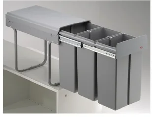 30 (3 x 10) litrów Technologia: w pełni wysuwany Instalacja: Podstawa szafki technologia otwierania: Prowadnica z pełnym wysuwemMateriałPojemniki na odpady są wykonane z tworzywa sztucznego. Akcesoria opcjonalneBrak ch akcesoriów opcjonalnych.