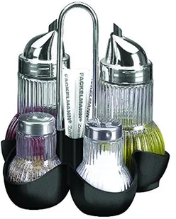 FACKELMANN Menage Rubin Es/Öl/S+P wylewka octu i oleju, solniczka i pieprzniczka, pojemnik na wykałaczki, korpus: szkło, srebrny/czarny, ok. 15 x 14 x 13,5 cm, 5 sztuk