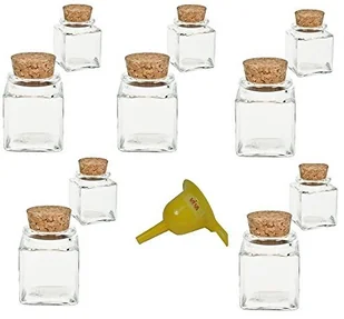 Viva Haushaltswaren G2080050/Set1/X Zestaw 10 mini szklanych butelek na przyprawy z korkiem 50 ML + żółty lejek