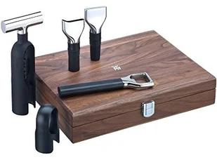 Niezależnie od tego, czy jesteś profesjonalistą, koneserem wina, czy po prostu domowym winiarzem, z pewnością będziesz zachwycony tym wspaniałym zestawem sommelierskim. Zawiera korkociąg, obcinacz do folii, lejek, zamknięcie do butelek i otwieracz do butelek wszystko zapakowane w poręczne designerskie drewniane pudełko. Przybory Baric wykonane są z wysokiej jakości stali nierdzewnej Cromargan(R), niezawodnej i łatwej w użyciu. Dzięki ergonomicznym cechom, wszystkie narzędzia doskonale leżą w dłoni , a otwieranie wina nie będzie stanowiło problemu. Zestaw naczyń w kolorze czarnym/stal nierdzewna nadaje się również jako piękny prezent dla miłośników wina.