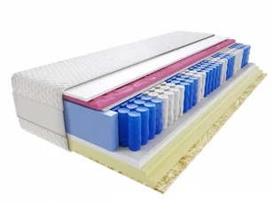 Sprężyny kieszeniowe 9 stref (262szt/1m2) - wszystkie nasze materace zbudowane są ze sprężyn kieszeniowych. Sprężyny kieszeniowe to zbiór pojedynczych sprężyn, każda z nich jest umieszczona w osobnym materiale, tzw. kieszeni. Dzięki temu nie słychać pracy sprężyn oraz wyeliminowany jest problem zsuwającej się osoby lżejszej na cięższą jak to ma miejsce w przypadku sprężyn bonellowych. Nasze materace posiadają 9 stref twardości zapewniając optymalne podparcie całego ciała. Miększe sprężyny stosowane w miejscu w którym nacisk ciała jest większy, np. w okolicach bioder. Twardsze sprężyny stosowane są w miejscach w których nacisk jest mniejszy jak np. odcinek lędźwiowy. Zainwestuj w materac klasy premium, który zagwarantuje zdrowy i wygodny wypoczynek.