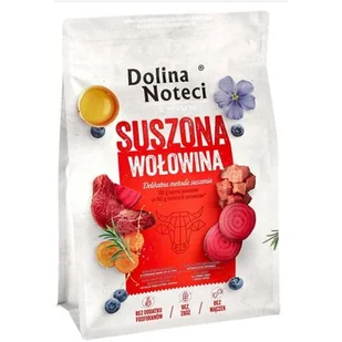 Dolina Noteci Premium z wołowiną to pełnoporcjowa suszona karma dla dorosłych psów wszystkich ras, pokrywając w 100% ich dzienne zapotrzebowanie na wszystkie składniki odżywcze, w tym witamin i minerałów.