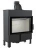W kominku zastosowano specjalnie profilowaną płytę dolną wykonaną z Acumotte, dzięki czemu komora spalania jest głębsza i mieści większą ilość drewna. Jednocześnie zastosowano skróconą komorę paleniska, co wpływa na mniejszą moc wkładu. Dzięki temu doskonale sprawdzi się on w salonach o niewielkich gabarytach.