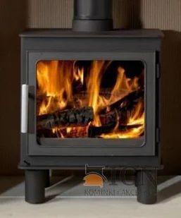 Piec wolno stojący stalowo-żeliwny z dużą wizją ognia. Nie posiada rusztu i popielnika