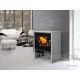 Piec kominkowy idealnie pasuje do nowoczesnych wnętrz. Drzwiczki pieca mają designerski nadruk na wielkopowierzchniowym przeszkleniu. Posiada system CDP - centralne doprowadzenie powietrza zewnętrznego. Standardowo możliwe jest podłączenie górnego lub tylnego odprowadzenia spalin. Dzięki dopływowi powietrza wtórnego, które opływa szybę drzwiczek, nie dochodzi do osadzania zabrudzeń. Komora spalania wyłożona szamotem. Regulacja dopływu powietrza pierwotnego i wtórnego za pomocą jednego elementu sterującego. W dolnej części pieca można przechowywać mniejsze zapasy drewna.