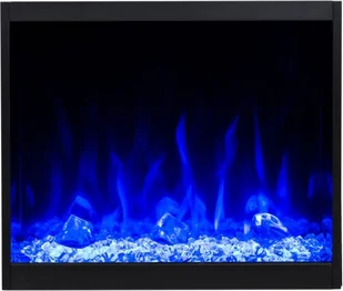 Nowoczesny kominek ścienny bez funkcji grzania z realistycznym płomieniem LED. Posiada trzy kolory płomienia i ultra cienkie ramki.