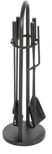 Narzędzia kominkowe od firmy J. A. D. TOOLS Zestaw narzędzi kominkowych, 4 sztuki Trwały metalowy materiał w kolorze czarnym. W zestawie miotła, łopata, grabie oraz szczypce z zawieszeniem na stabilnym stojaku. Idealny zestaw do pielęgnacji kominka w mieszkaniu oraz w weekendowej rezydencji. Waga 2,2 kg.