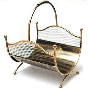 KOSZ NA DREWNO nr 121 Solidny kosz na drewno wykonany z metalu. Szerokość 37 cm, długość 40 cm, wysokość 54 cm Wysokość kosza bez rączki 32 cm. Bardzo praktyczna ozdoba każdego komin