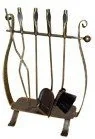 Zestaw kominkowy Harfa W zestawie: łopatka, zmiotka, pogrzebacz, szczypce - Kuty, kolor: złota patyna
