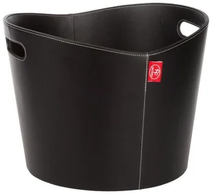 Kosz na drewno ,,Viola" to produkt o unikalnej formie wykończony ekologiczną skórą. Dostępny w kolorze czarnym obszyty szwami z białej nici. Kosz wzmocniony podwójnym szkieltem dzięki czemu sprawia iz jest niezwykle odporny na zniszczenia. Kosz jest sztywny, dzięki czemu posiada dużą odporność mechaniczna. Posiada uchwyty po obu stronach dzięki czemu jest on idealny do przenoszenia drewna z miejsca na miejsce oraz składowania drewna przy kominku.