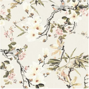 Tapeta kwiatowy wzór beżowym,zielonym,szarymIróżowym - 53 cm x 10.05 m - MICHALSKY LIVING
