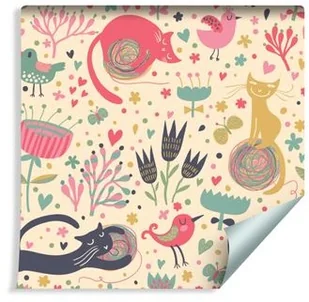Muralo Tapeta Dla Dzieci - Kolorowe Kotki, Ptaki i Rośliny